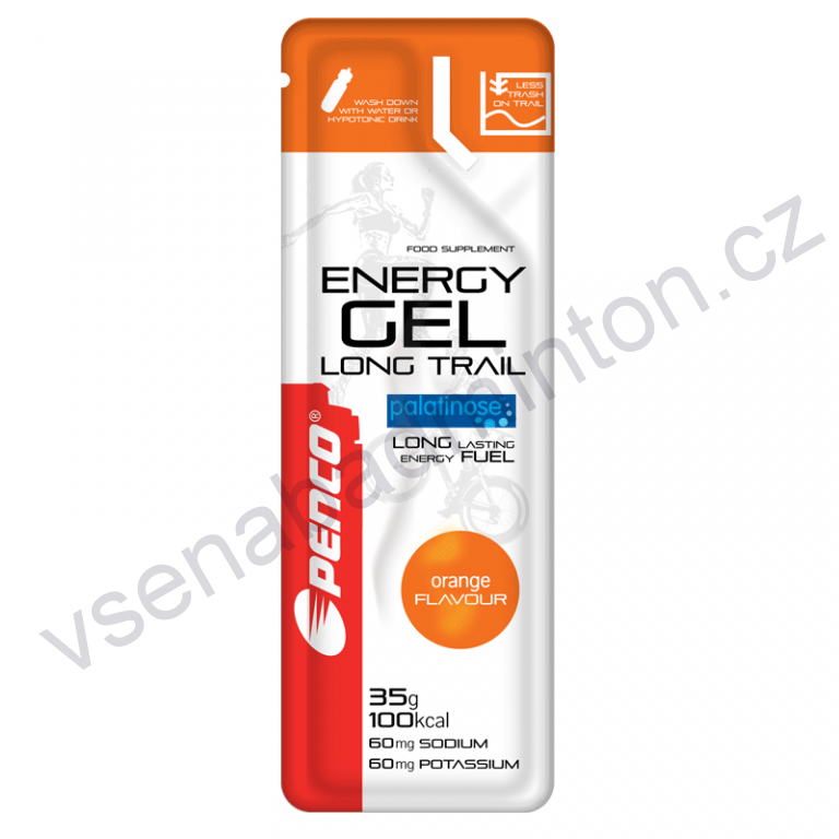 Penco® ENERGY GEL LONG TRAIL zvyšuje hladinu sacharidového „paliva“ před a během výkonu. Obsahuje speciální směs komplexních sacharidů (maltodextrinů) a jednoduchých cukrů (glukózy a fruktózy) a nyní nově i Palatinosu pro postupné uvolňování energie během déletrvajících sportovních výkonů.
