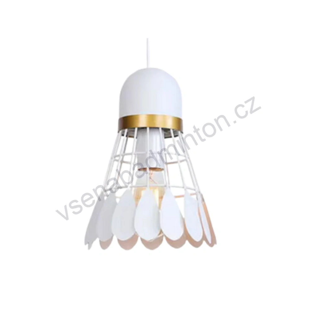 Moderní kovový lustr ve tvaru badmintonového míčku. Výška míčku je 29 cm a šířka je 21 cm. Dodáváno bez žárovky (E27).